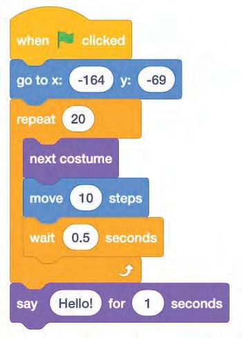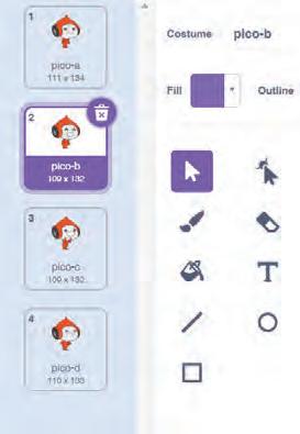 2 Ana has designed a character in Scratch but doesn’t know how to animate a sprite. What should she do?