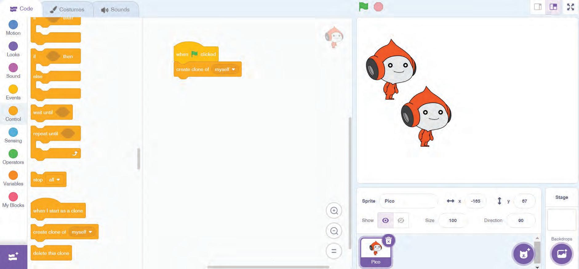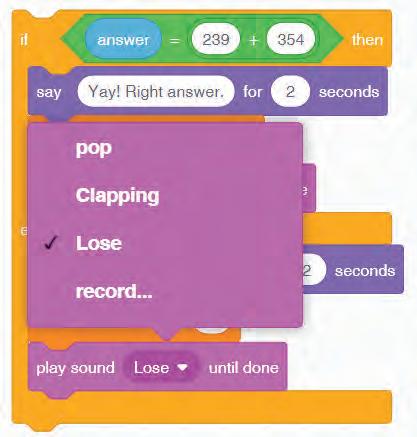 9 Drag and drop the play sound Pop until done block from the Sound category. This block plays the pop sound, by default.