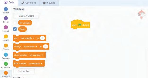 7 Now, add the block from the Variables category to change the score by 1 whenever the player clicks the sprite.