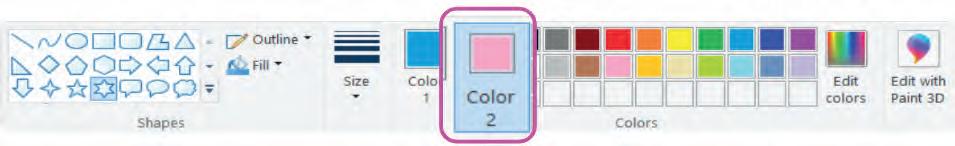 In MS Paint, we can add colours to our shapes using the ‘Fill’ option.