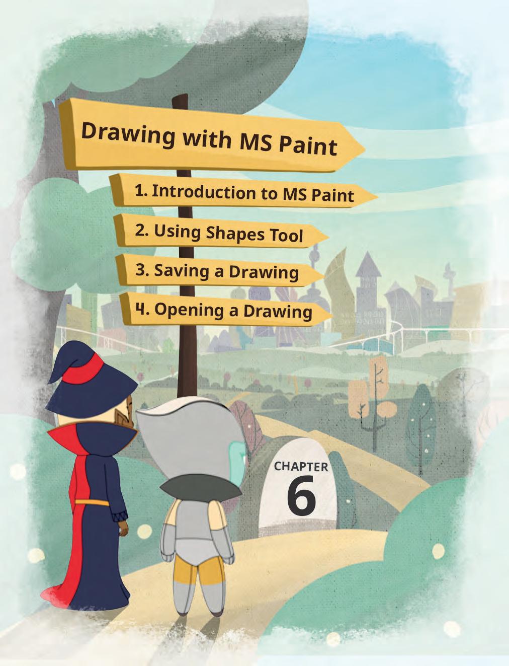 In MS Paint, we can colour shapes to make them beautiful. We can use the ‘Outline’ and ‘Fill’ options to add colours. With the colour picker tool, we can choose a particular colour for drawing. In MS Paint, we can fix mistakes with the ‘Eraser’. Brushes help us to draw in thick and thin strokes. The ‘Text Tool’ allows us to write words.
