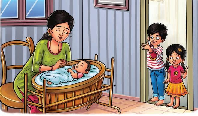 1. Don’t Wake the Baby! (English), translated by Alisha Berger, based on original story Suỵt! Em Bé Đang Ngủ (Vietnamese), written by Huynh Thi Kim Lien, illustrated by Huynh Thi Kim Lien, published by Room to Read (© Room to Read, 2015) under a CC BY 4.0 license on StoryWeaver. The names and few other edits have been made by Uolo EdTech Pvt Ltd for use in this textbook.