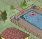 There is a swimming pool near my house. I swim in the swimming pool. library