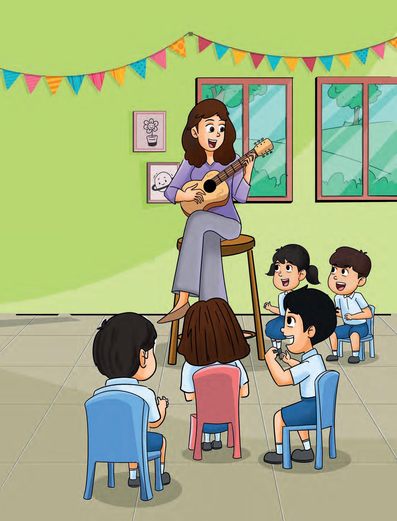 Story Time: A fun-filled story, with stunning visuals, that highlights key words and phrases related to the theme. QR codes enable easy access to the animation of the story on the mobile app.