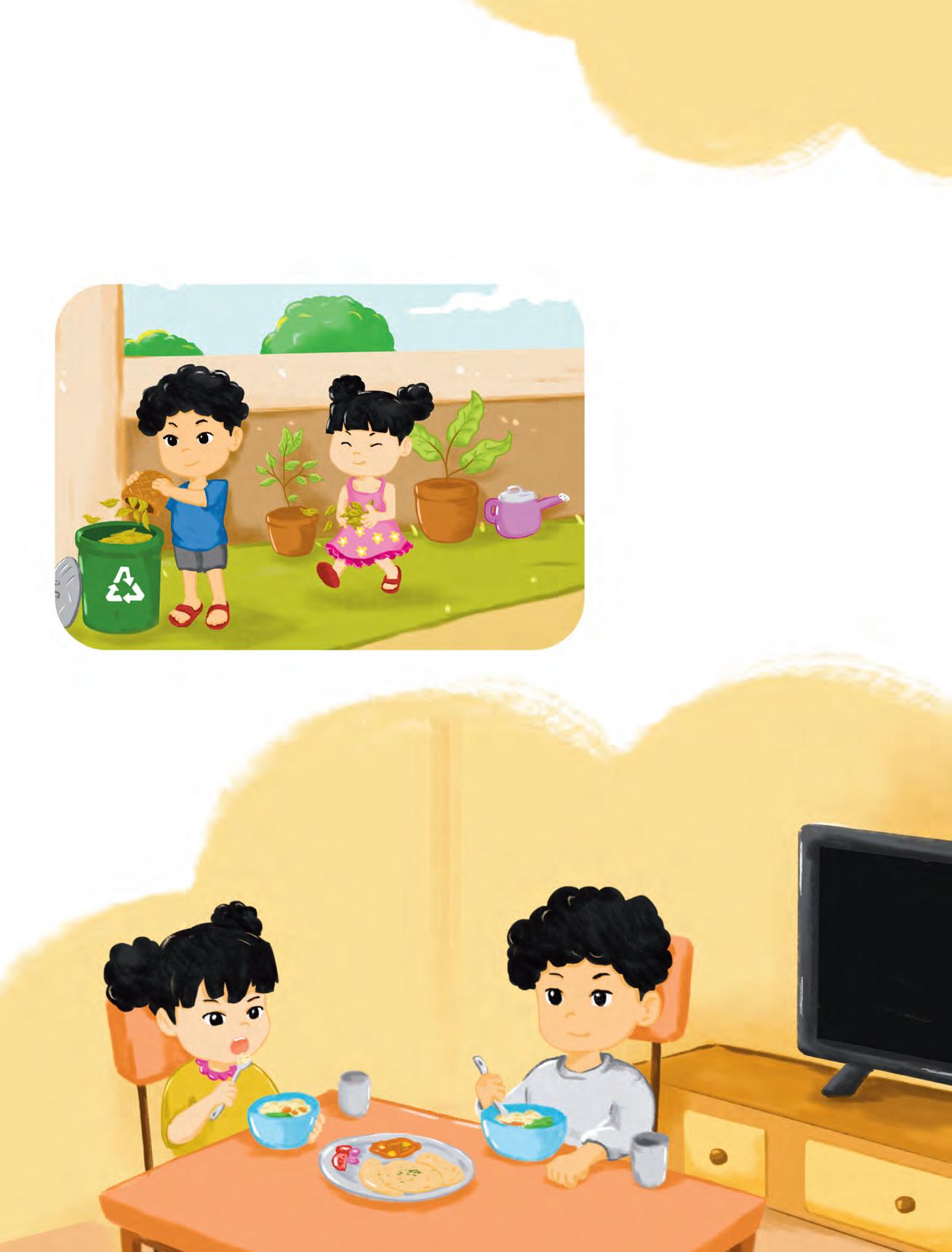 • Ask your child to share some of the words and sentences they learnt to speak in the class on a regular basis. Help them practise saying these with fluency and confidence. You can add a few words and sentences on your own too.