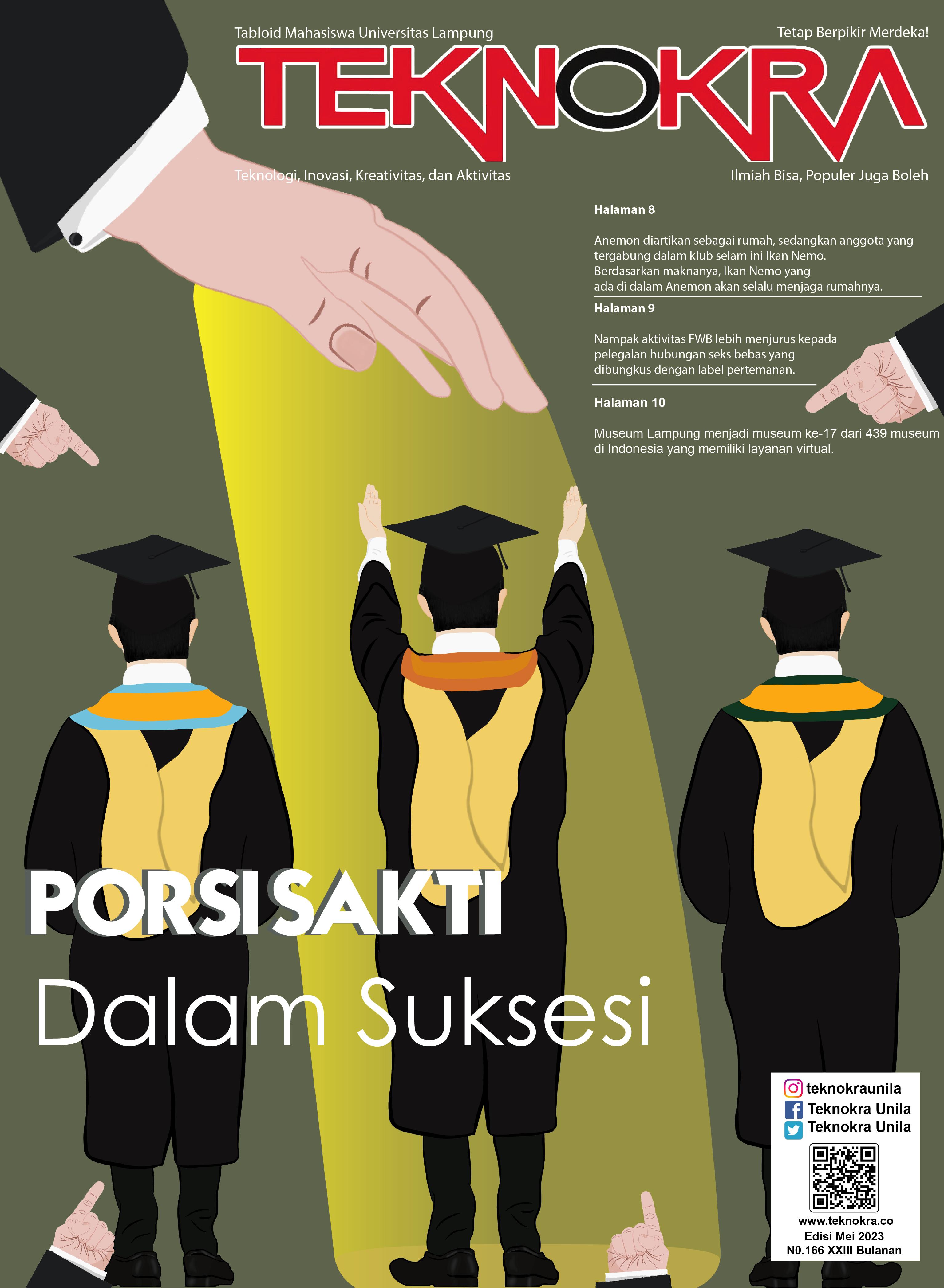 MAJALAH TEKNOKRA diterbitkan oleh Unit Kegiatan Penerbitan Mahasisawa (UKPM) Teknokra Universitas Lampung. Alamat Gerha Kemahasiswaan Lt.1