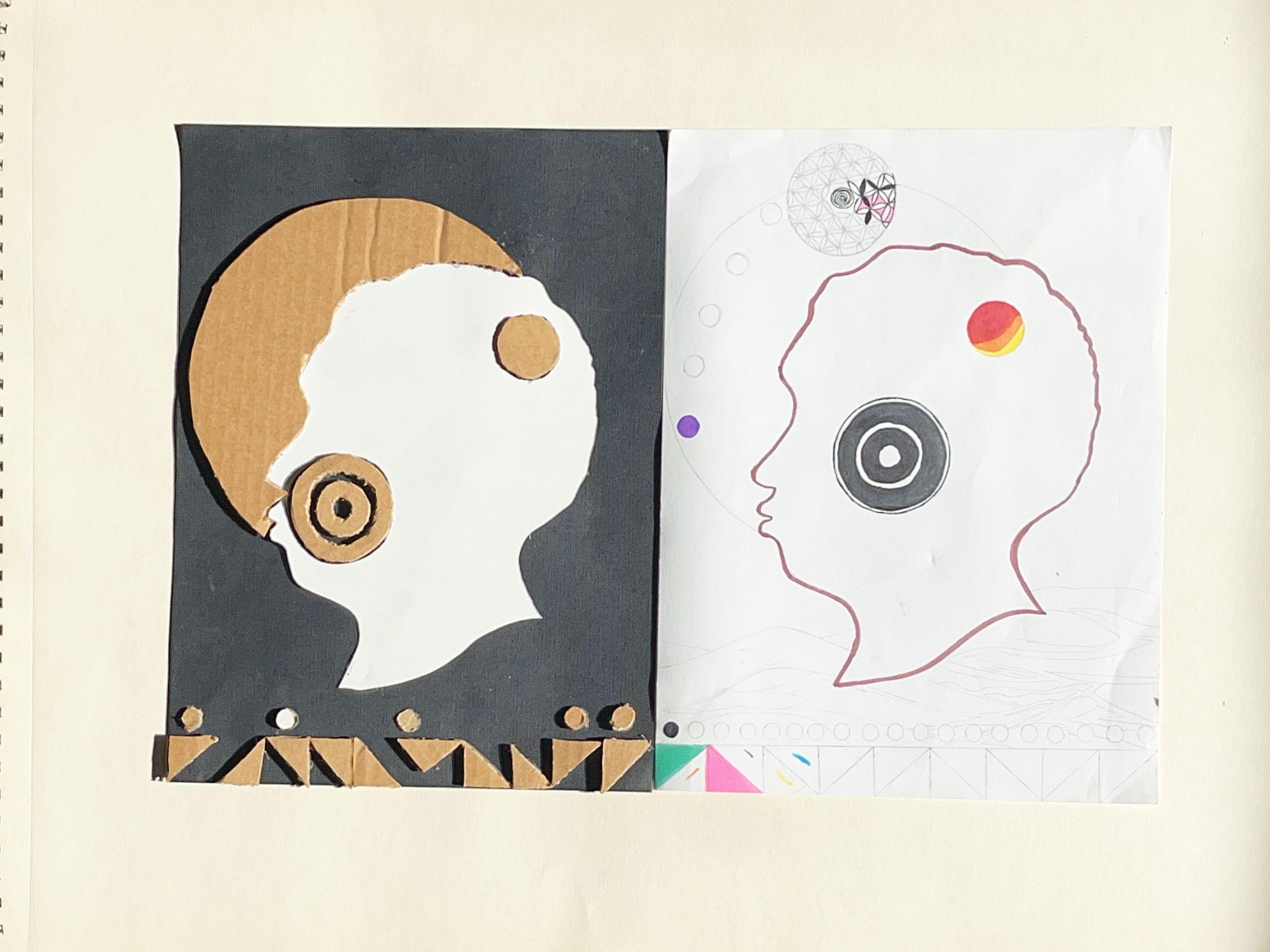 This piece feels like my best work—it’s the one I choose for my profile pictures all the time.The project started as a self-portrait focusing on a side view of the head. I wanted to incorporate various shapes, like triangles, to form symbols, creating a modern aesthetic while connecting to afrofuturism, a theme I've been exploring.The image on the right is meant to be a minimalist representation of the shaped head.
