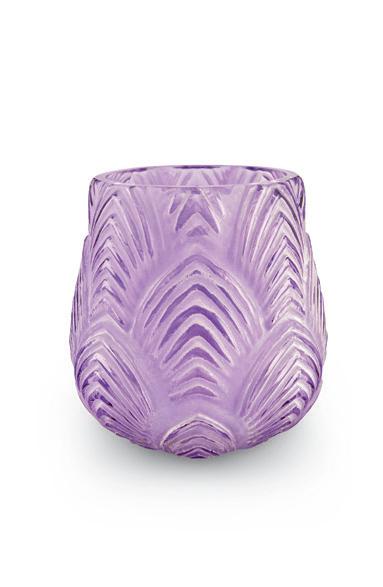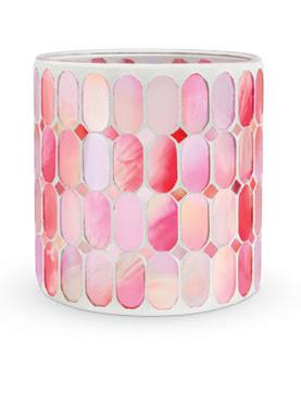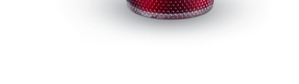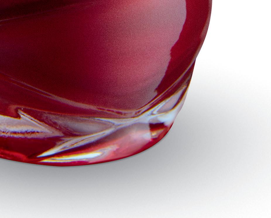 MATERIALS Sculpted glass cylinder with debossed heart pattern detail and pearlescent red finish.
