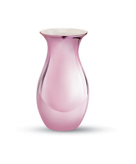 MATERIALS Sculpted glass vase with pearlescent pink finish.