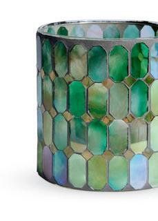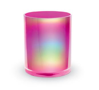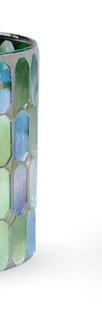 MATERIALS: Glass cylinder with iridescent finish DIMENSIONS: 4¾" h x 4" w