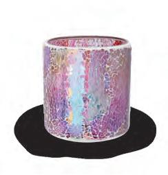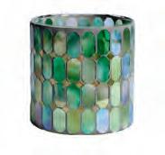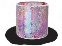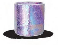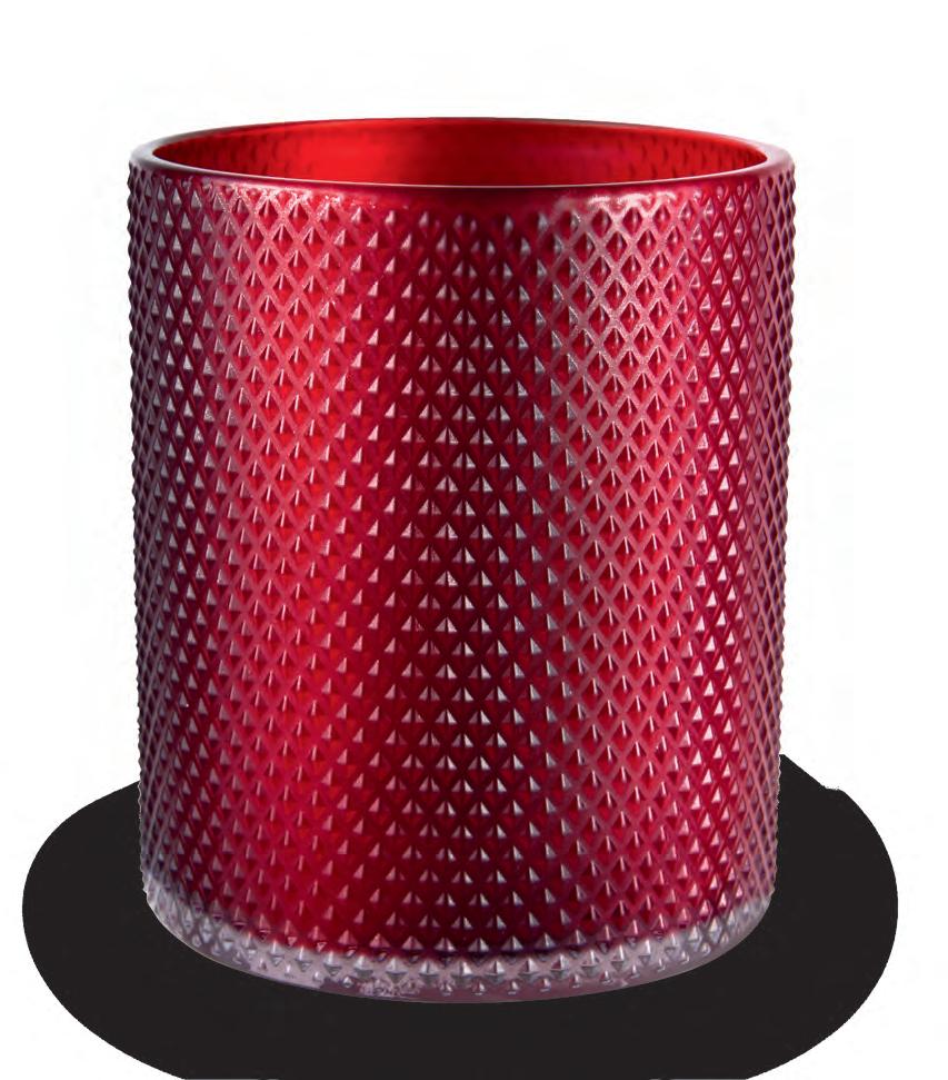 MATERIALS Sculpted glass cylinder with embossed diamond pattern detail and pearlescent finish.