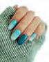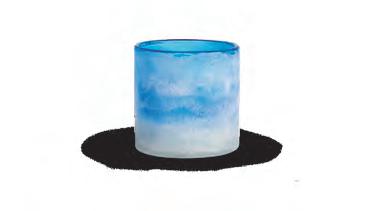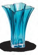 MATERIALS Aqua sculpted glass vase with an iridescent finish.