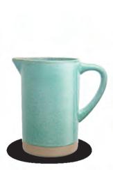 MATERIALS Aqua stoneware ceramic pitcher with reactive glaze and natural bottom.