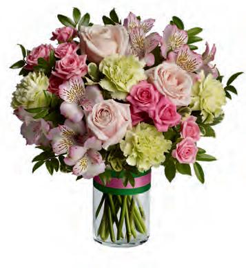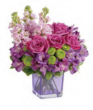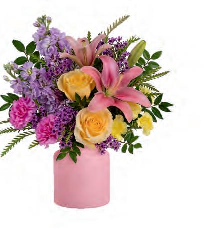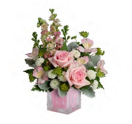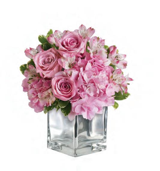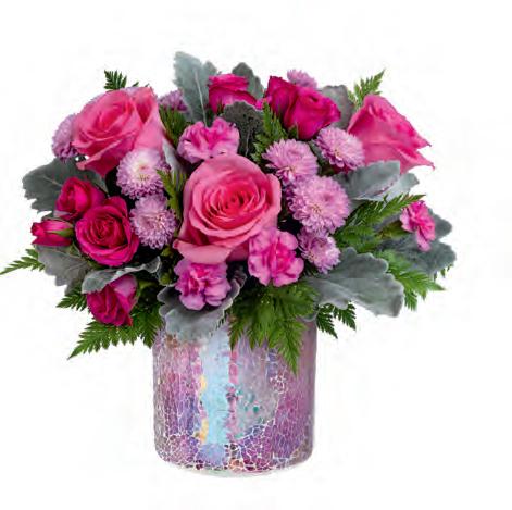 • A Teleflora Exclusive, this pretty pink sculpted glass vase is perfect for Galentine’s Day and throughout the year. It also has great after use, doubling as a candleholder.