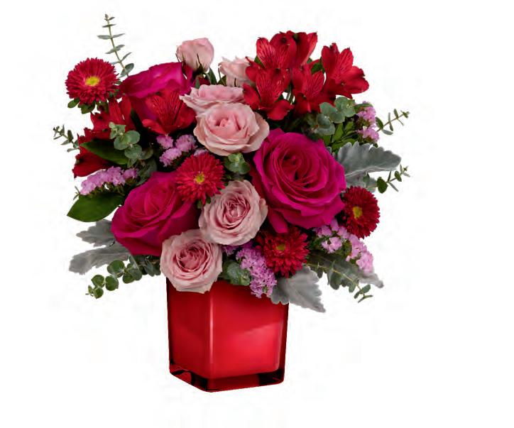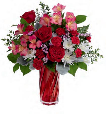 • This stunning Teleflora Exclusive with its beautiful spiral curves and modern pearlescent red finish will be crushing it for Valentine’s Day and throughout the year.