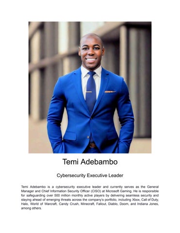 Temi Adebambo is a cybersecurity executive who has shaped security strategy at Microsoft, where he leads as General Manager and Chief Information Security Officer (CISO) for gaming. In this role, he is entrusted with protecting more than 500 million monthly players, providing comprehensive security across a suite of iconic titles including Xbox, Call of Duty, Halo, World of Warcraft, Candy Crush, Minecraft, Fallout, Diablo, Doom, and Indiana Jones. With more than twenty years of experience, Temi’s background spans technology, gaming, life sciences, financial services, and industrial sectors, equipping him with a broad and adaptable leadership perspective. Renowned for his ability to guide organizations through major technology and security transformations, Temi has overseen enterprise-scale initiatives from strategy to execution. He has supported Fortune 500 clients in designing cloud security architectures, strengthening cyber risk management, and achieving compliance in highly regulated environments. His technical skills encompass cloud and application security, identity and access management, privacy, data protection, threat detection, and incident response, all underpinned by a deep knowledge of industry frameworks such as HITRUST, NIST, FedRAMP, and ITIL, as well as compliance standards including PCI DSS, SOC 2, and ISO 27001. Temi’s commitment to professional growth is reflected in multiple certifications across leading platforms like AWS, Google Cloud, and Azure. He has been honored with the CISO Connect Top 100 Accelerated CISOs Award in both 2024 and 2025, further cementing his standing as a respected voice in the field. He is frequently invited to share his insights at significant conferences, such as Black Hat MEA and the Transformational National CISO Assembly. Born and raised in Lagos, Nigeria, Temi credits his upbringing for instilling resourcefulness, adaptability, and a strong sense of community—qualities that continue to guide his leadership.