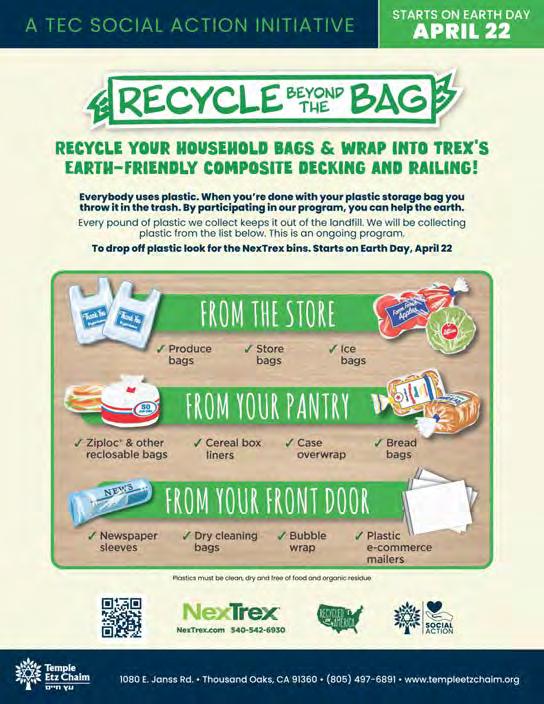 When your home collection bag is full take it to the Temple. Place your plastic in a NexTrex Recycle Bin located at the School Building or at the main Temple building.