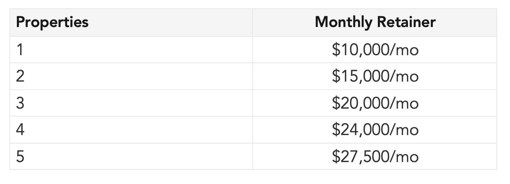 Property Search (Tier 2): Full-scope property identification, vetting, and acquisition zoning analysis, municipal outreach, LOI drafting, negotiation, and permitting. Monthly retainer; 3-month minimum.