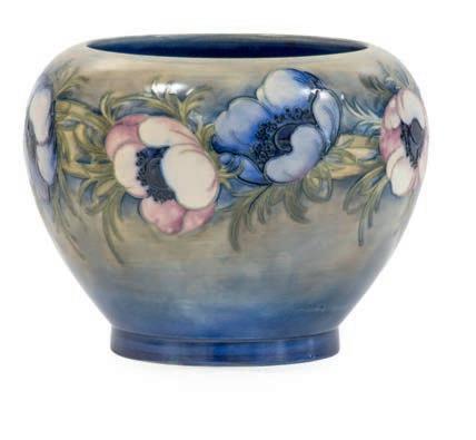 William Moorcroft (1872-1945): An Anemone Pattern Vase, circa 1938, on a matt glaze ground, blue painted signature, impressed W MOORCROFT POTTER TO H.M THE QUEEN MADE IN ENGLAND, 21cm diameter, 15cm high