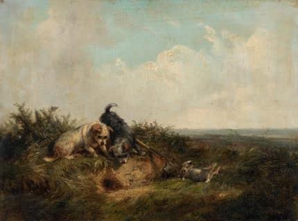 Attributed to Thomas Smythe (1825-1906) Terriers rabbiting