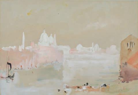 “Venice, The Giudecca from the Lagoon” Initialled, mixed media, 21.5cm by 30.5cm