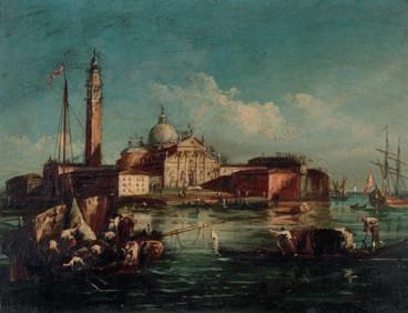After Francesco Guardi (1712-1793) Italian View of San Giorgio Maggiore Oil on panel, 29cm by 38.5cm