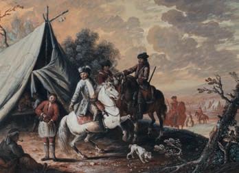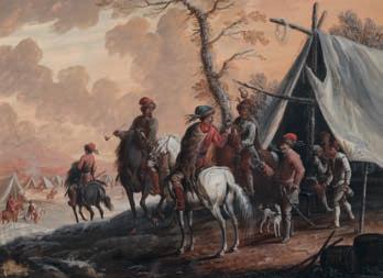 Military encampment in the snow Gouache, together with a companion of a similar subject matter, 16cm by 21cm (2)