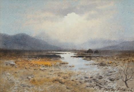 William Percy French (1854-1920) Irish Turf stacks in bogland Signed, watercolour, 16cm by 23.5cm £500-700