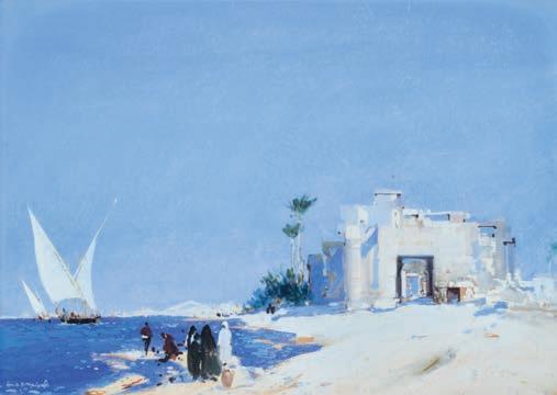 North African coastal scene Watercolour and gouache, 25cm by 35.5cm