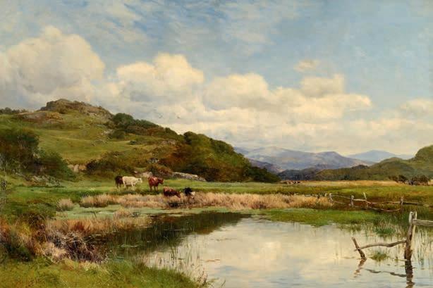 “The Goat Herd” - Shepherds at rest in a sunbathed lakeland landscape