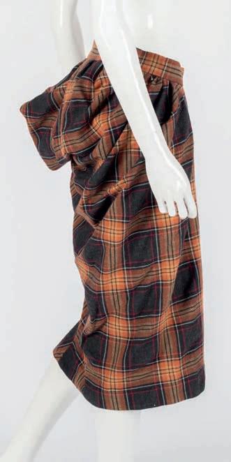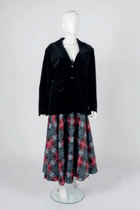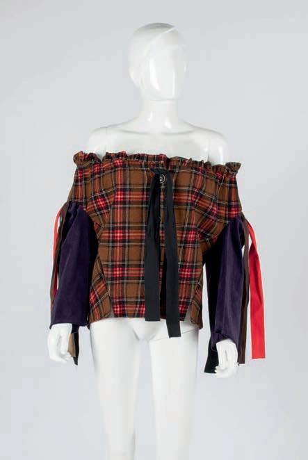 Westwood incorporated ‘godets’ influenced by 17th and 18th century costume, which were small triangular or diamond shaped panels of fabrics, often in contrasting colours, to enhance the silhouette and add a touch of theatricality.