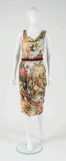 Bearing a print of Peter Paul Rubens ‘Rape of the Daughters of Leucippus’, short asymmetric sleeves, a draped neckline, gathered detail to both side seams