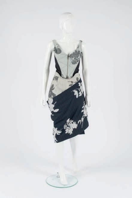 Vivienne was photographed wearing an identical dress, see British Vogue, July 1992. She used this boulle print for the first time in ‘Portrait’ but went on to repeat it in different colourways and fabric textures in ‘Dressing Up’ and ‘Salon’. First shown on the catwalk A/W 1991
