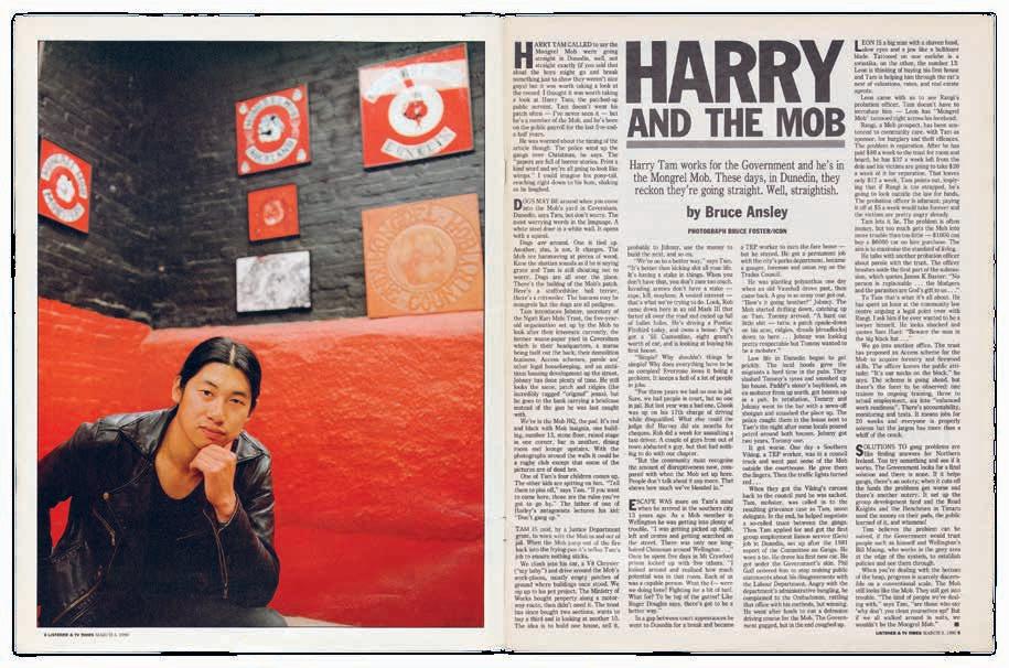 Harry Tam, pictured in ‘Harry and the Mob’, NZ Listener , 5 March 1990, pp. 4–5.