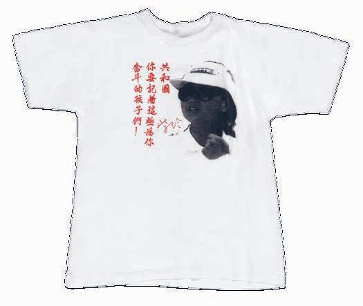 Anna bought this shirt while still in Hong Kong for the first commemoration of what is now known as the Tiananmen Square massacre. It features an image of Chai Ling, one of the key student leaders in the Tiananmen Square protests, alongside a