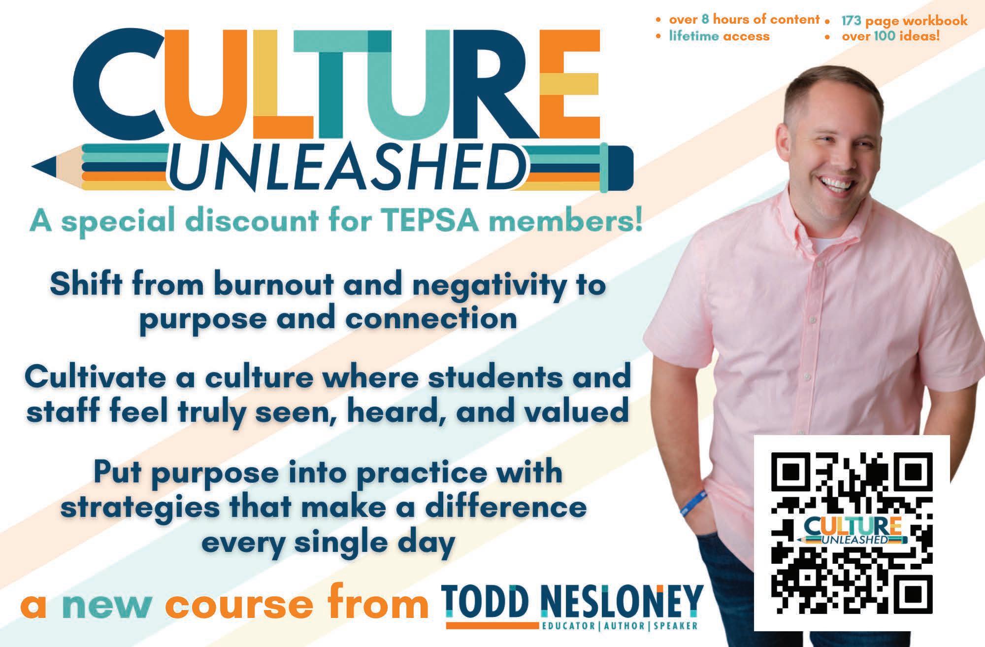 Todd Nesloney is TEPSA’s Director of Culture and Strategic Leadership. He is an award-winning educator, author and international speaker.