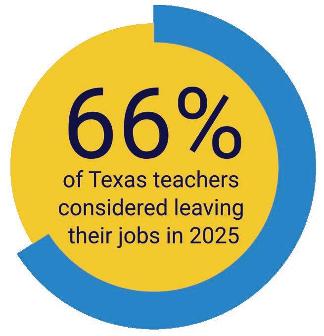 Sources: Texas Elementary Principals & Supervisors Association. (2025, October 19). TEPSA Talk: Building a Winning Team with Tom Sauve. [YouTube]. https://www.youtube.com/watch?v=n7tlz97odb0 Caldera, B. (2025, September 26). "Texas teacher retention shows modest improvement, but 66% still consider leaving their jobs." Texas Public Radio. https://www.tpr.org/news/2025-09-26/texas-teacherretention-shows-modest-improvement-but-66-still-consider-leaving-their-jobs