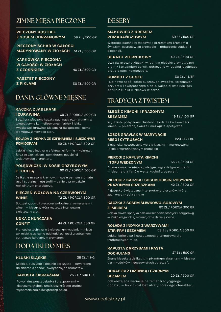 Tym, którzy w grudniowym zabieganiu szukają odrobiny oddechu, przypominamy o świątecznym menu przygotowanym przez Cook Story — eleganckiej i wygodnej propozycji, by cieszyć się wyjątkowymi smakami bez pośpiechu. A wszystkim miłośnikom domowych wypieków i rodzinnego gotowania życzymy, by ten sezon był pełen aromatów, tradycji i ciepła.
