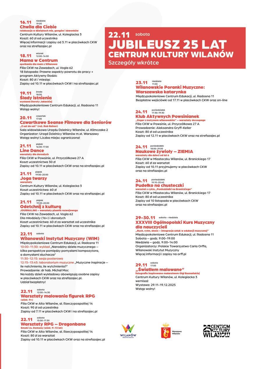 W Wilanowie nie brakuje okazji, by pielęgnować te wartości. Na Zawadach powstaje nowa szkoła, której przestrzeń została zaprojektowana tak, by wspierać rozwój dzieci w przyjaznym, inspirującym otoczeniu. W Pałacu Wilanowskim już wkrótce rozbłyśnie ogród świateł – setki iluminacji stworzą wyjątkową atmosferę, idealną do rodzinnych spacerów i spokojnej zadumy w jesiennym klimacie.