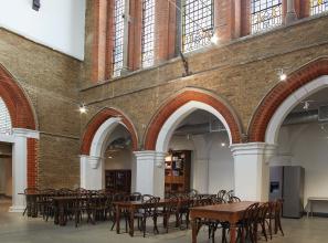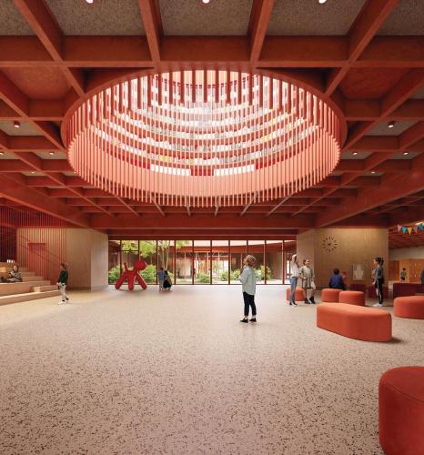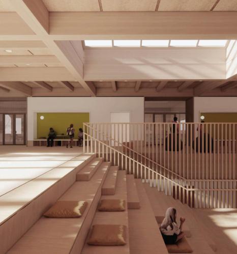 Wnętrze szkoły kontynuuje ideę budowania wspólnoty.