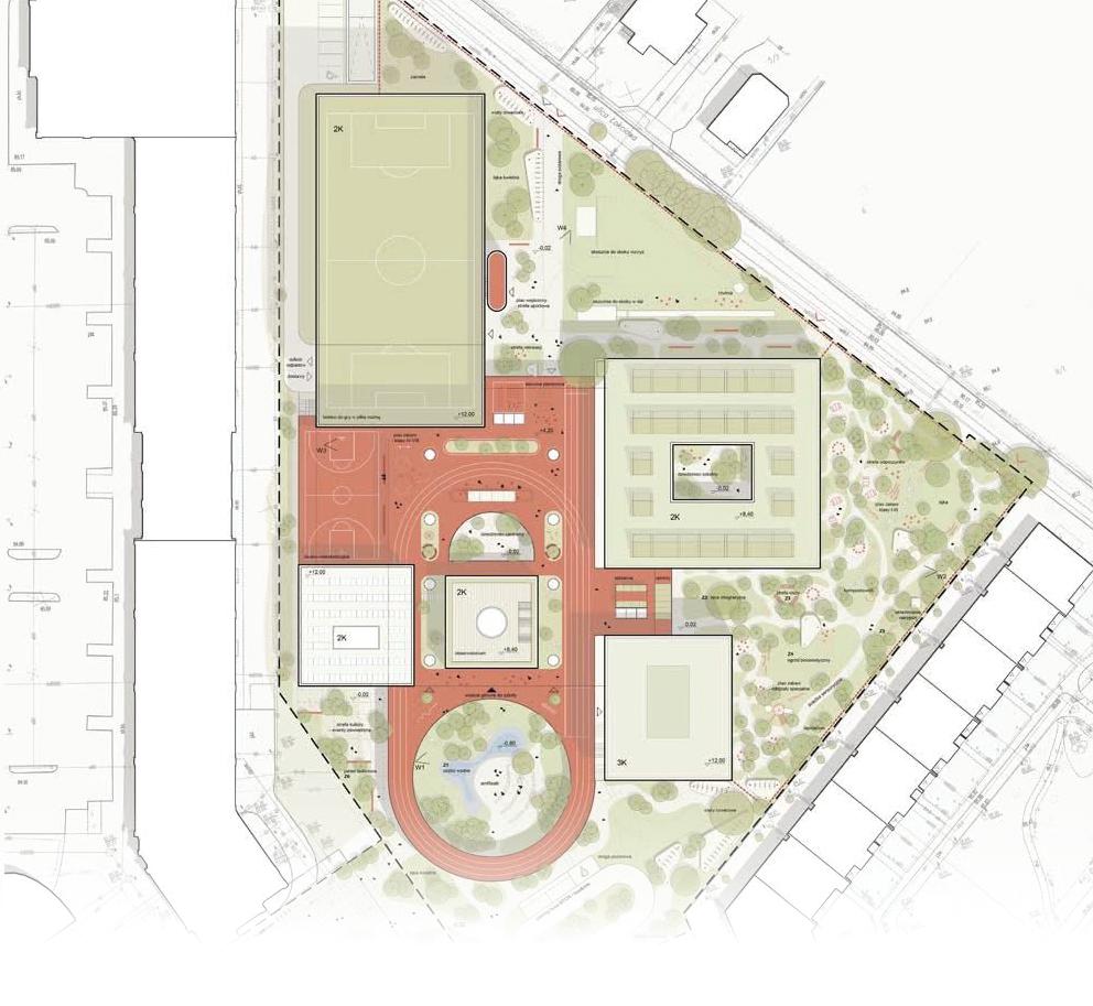 Teren wokół obiektu ma pełnić funkcję nie tylko edukacyjną, lecz także społeczną –znajdzie się tu miejsce na spotkania, zajęcia sportowe czy wydarzenia kulturalne.