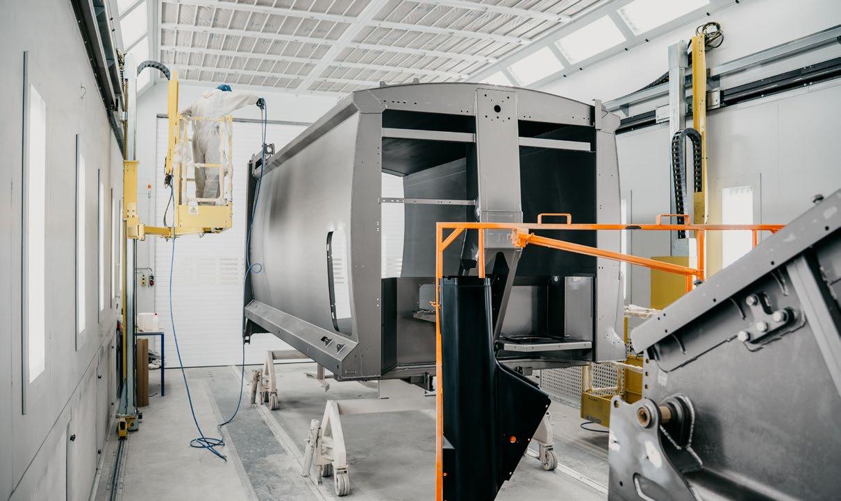 Der Bau dieses neuen 10.000 m² großen Gebäudes wurde Anfang 2025 abgeschlossen. In den nachfolgenden Monaten wurden die gebäudetechnischen Anlagen, der Brückenkran, die Schweißstationen, die Strahlkabine und die Lackierstraße errichtet. Die Produktion in der neuen Anlage begann im September. Im Neubau werden Olympus-Aufbauten und andere Produkte gefertigt und lackiert, um dann im bestehenden Gebäude auf das Fahrgestell montiert zu werden.