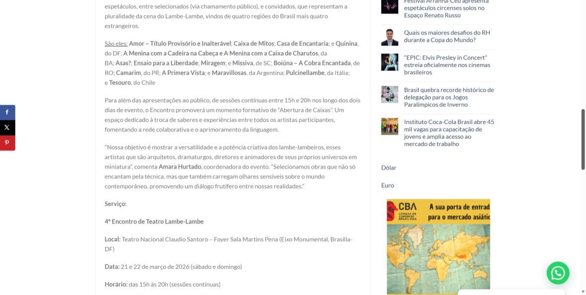 Encontro de Teatro Lambe-Lambe anuncia os espetáculos de sua quarta ediçãoRADAR DIGITAL BRASÍLIA