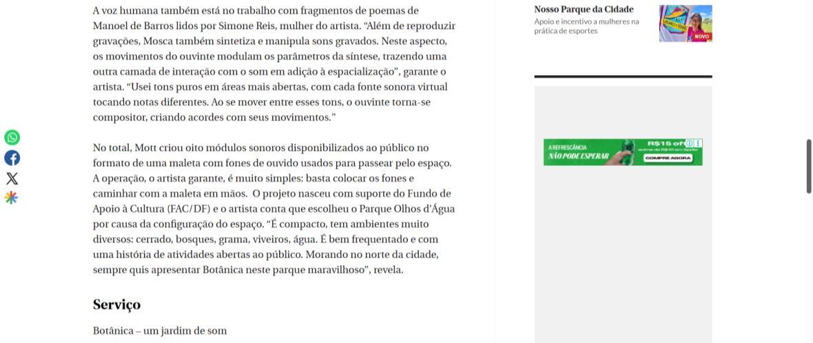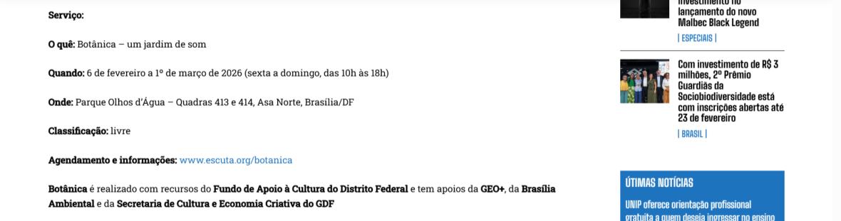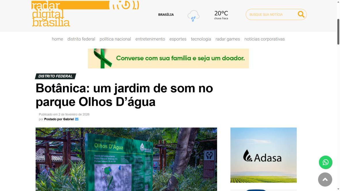 Botânica: um jardim de som no parque Olhos D’água - Capital do Entorno