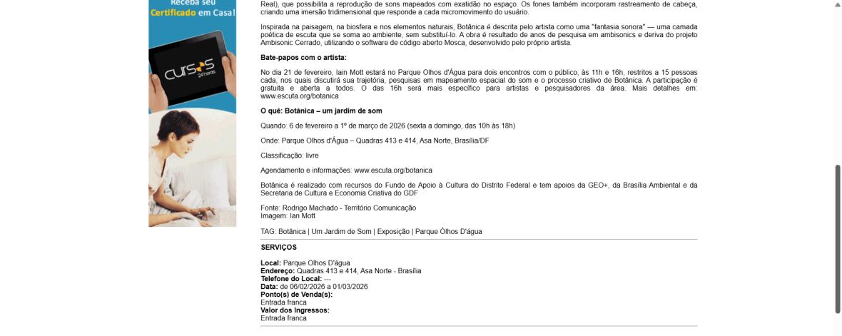 Botânica: um jardim de som no parque Olhos Dágua | Brasília Web - Eventos de Exposição