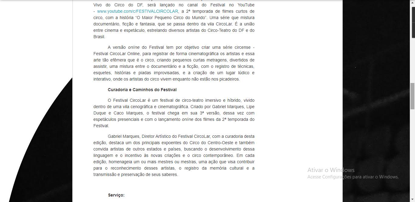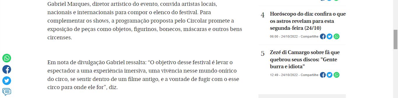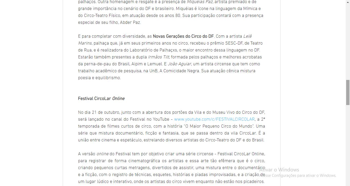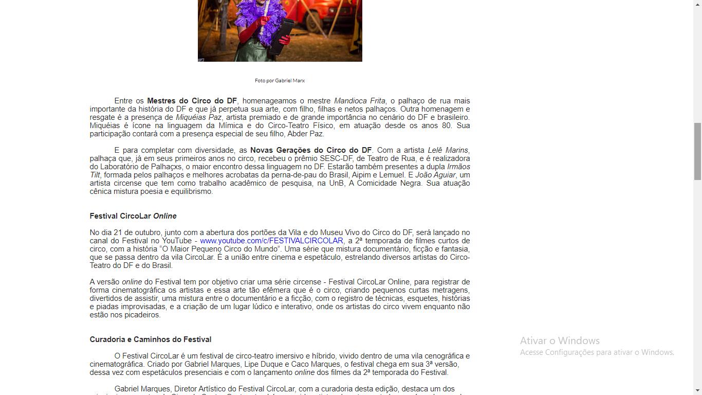 Vídeos de divulgação: https://www.youtube.com/c/FESTIVALCIRCOLAR https://www.youtube.com/watch?v=8CBk_DQLkBc