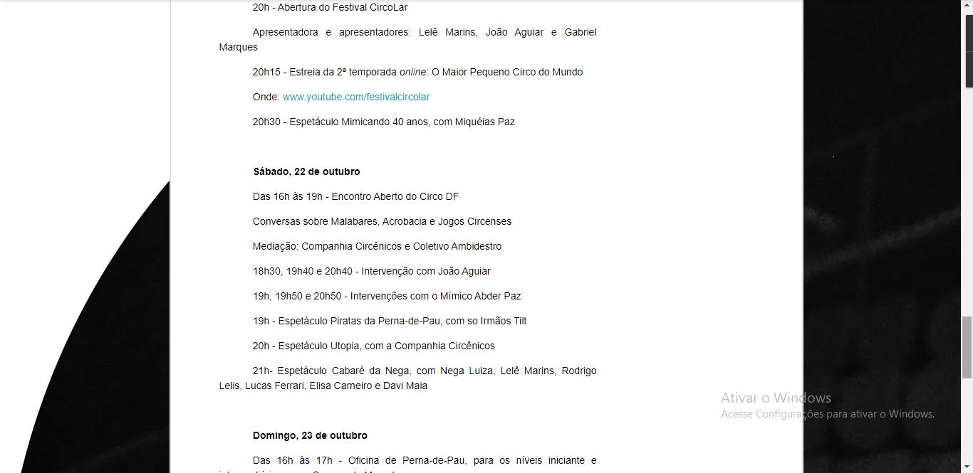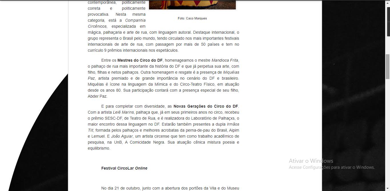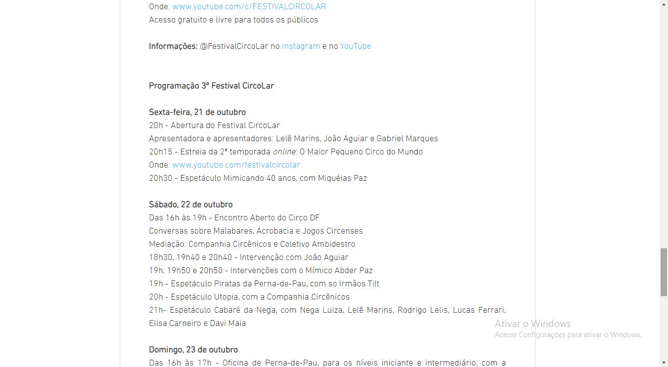 Informações: @FestivalCircoLar no Instagram e no YouTube