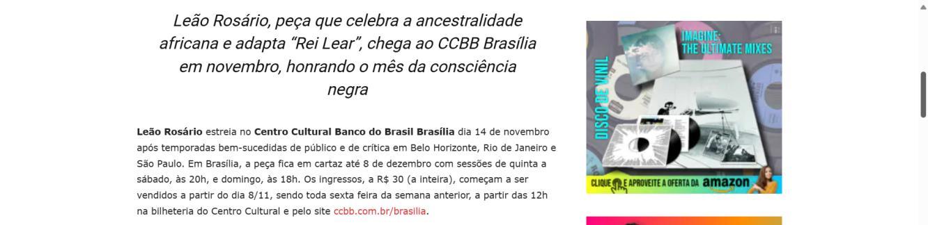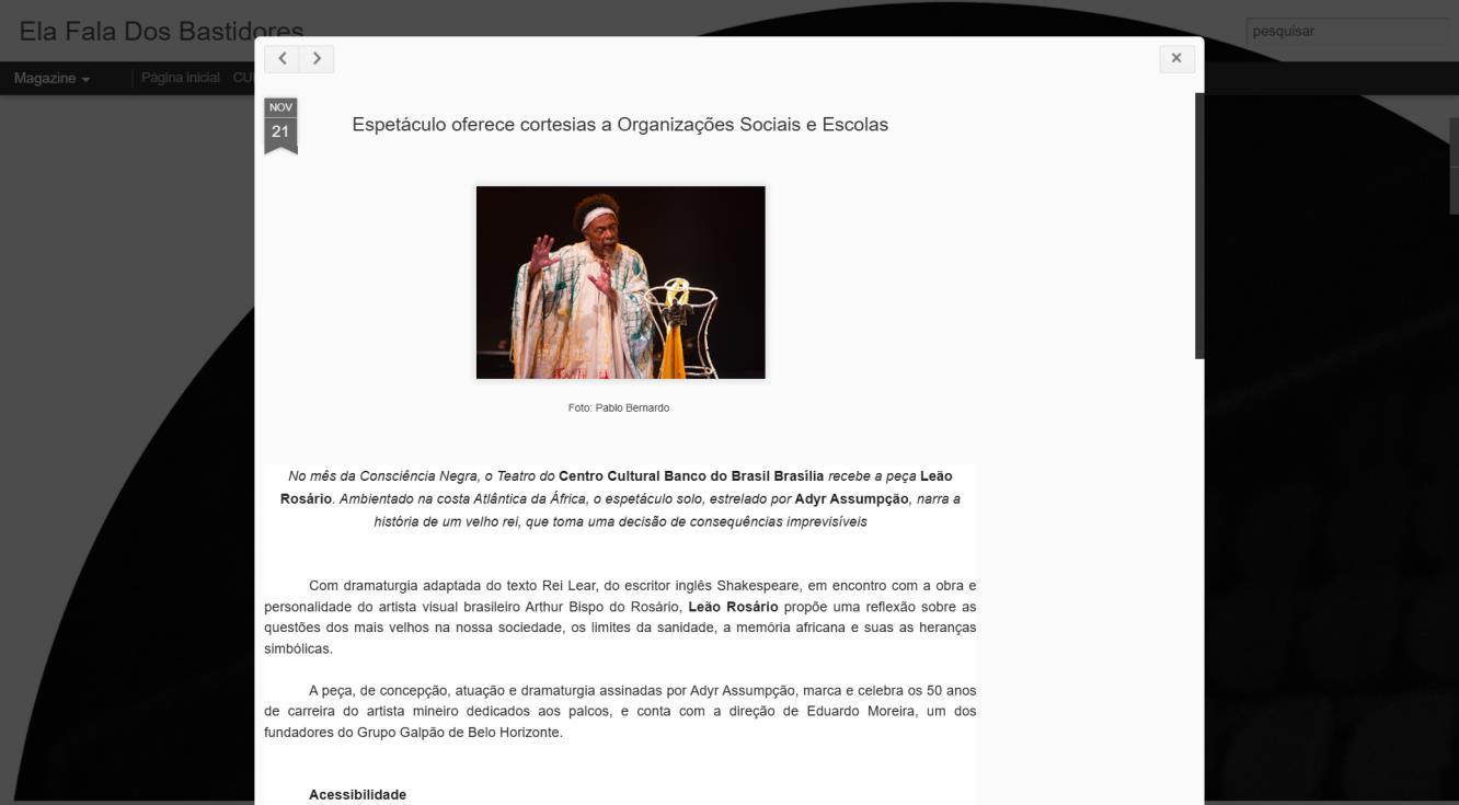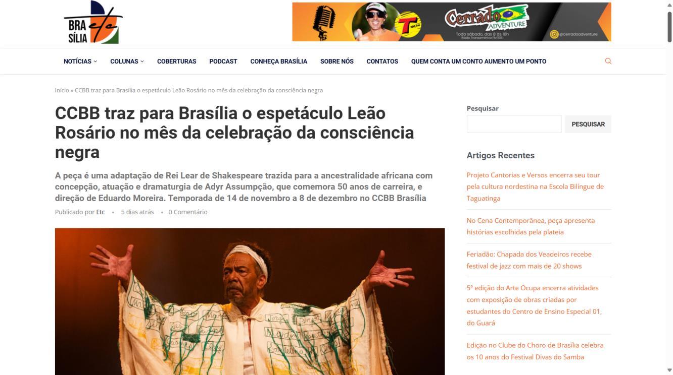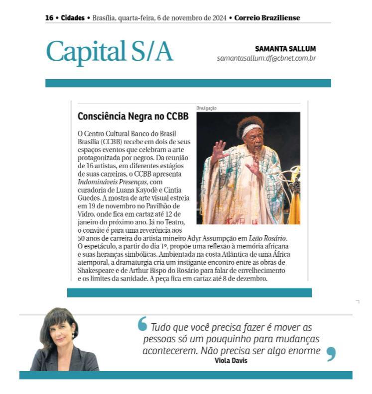 CCBB traz para Brasília o espetáculo Leão Rosário no mês da celebração da consciência negraBlog da Zuleika
