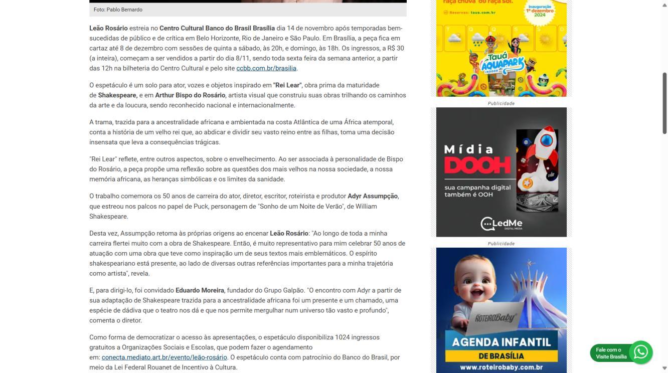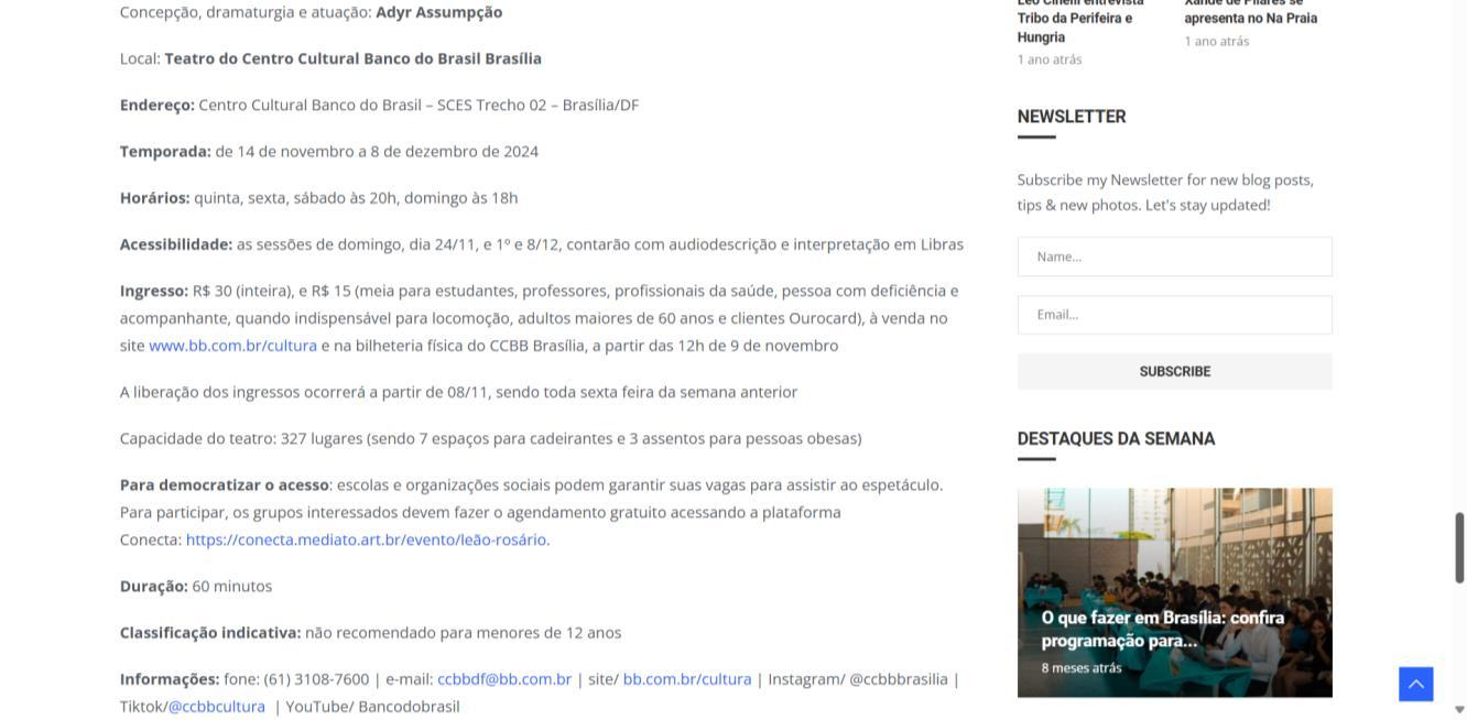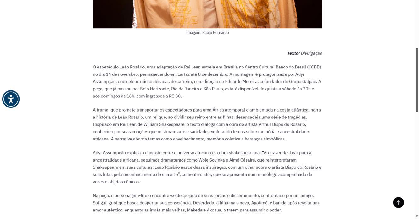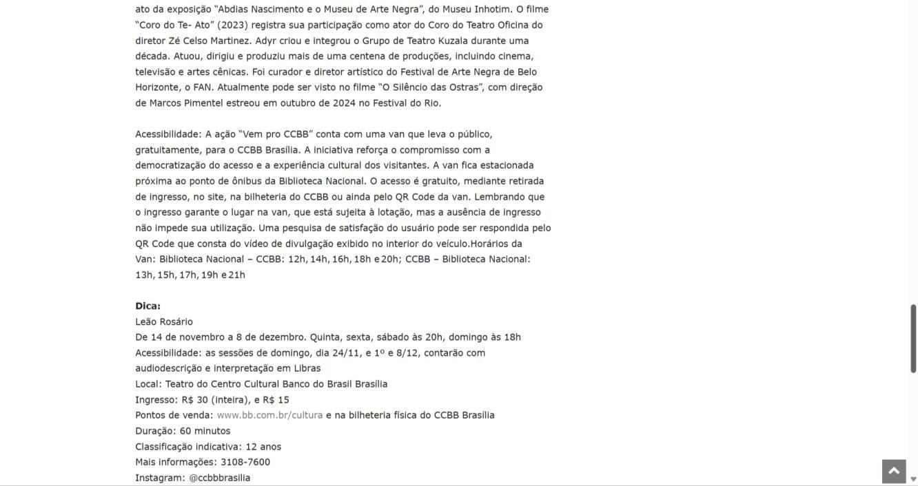 CCBB traz para Brasília o espetáculo Leão Rosário no mês da celebração da consciência negraBlog da Zuleika