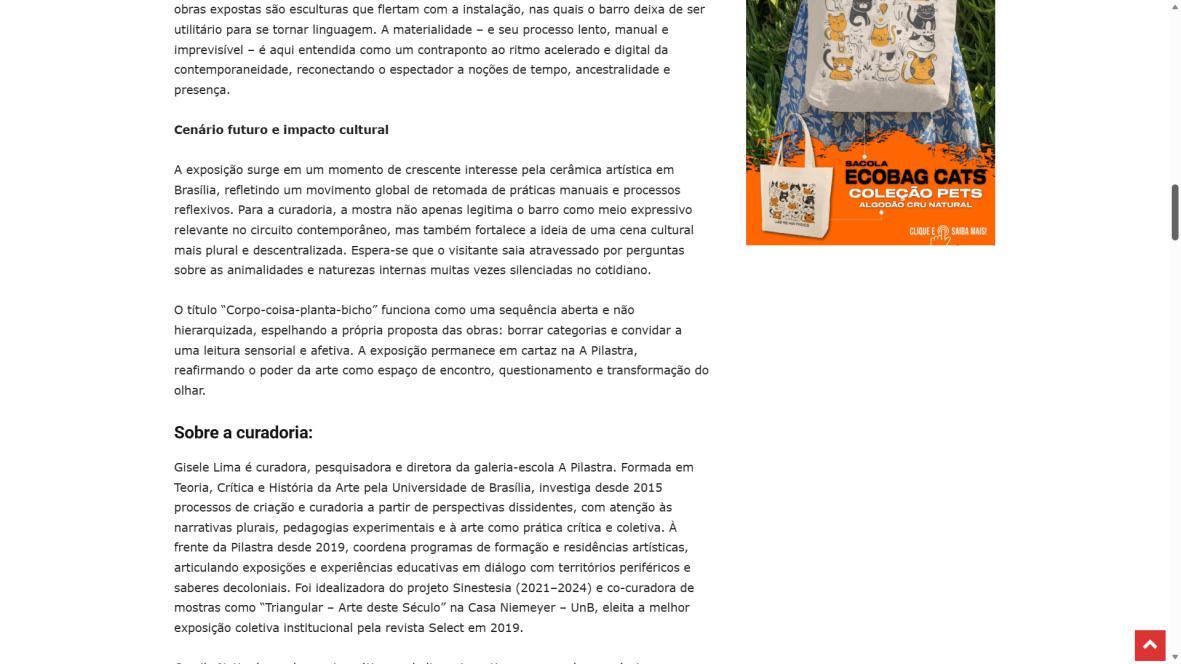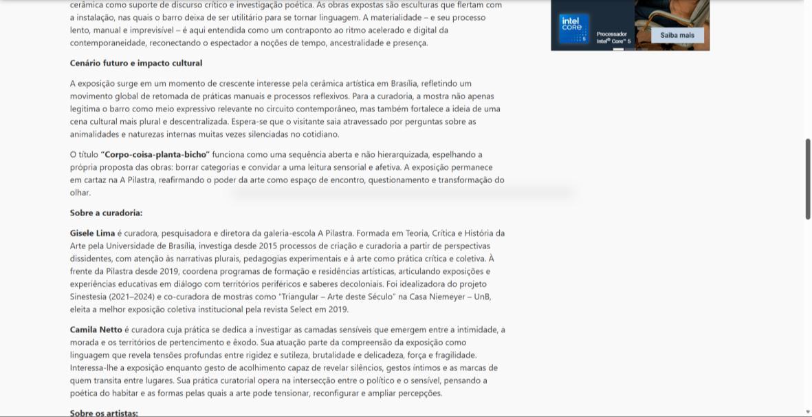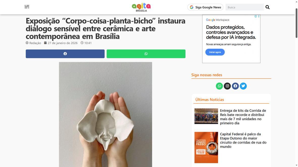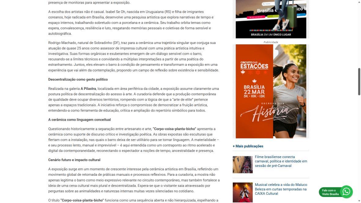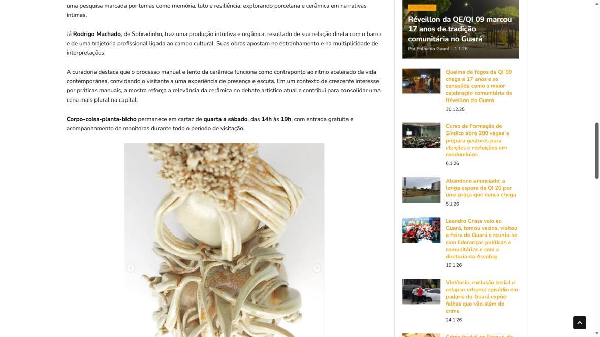 Corpo-coisa-planta-bicho afirma a cerâmica como linguagem legítima da arte contemporânea em Brasília, ampliando o repertório do circuito local e tensionando hierarquias ainda presentes na cena cultural.